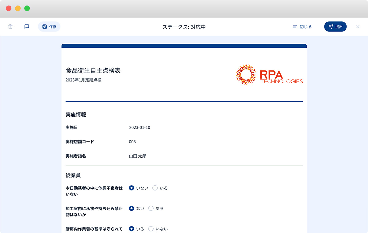 オペトラが点検内容を自動でチェックし、面倒な作業から解放。