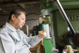 ボール盤で作業中に霧粉が飛び、目に入りそうになる